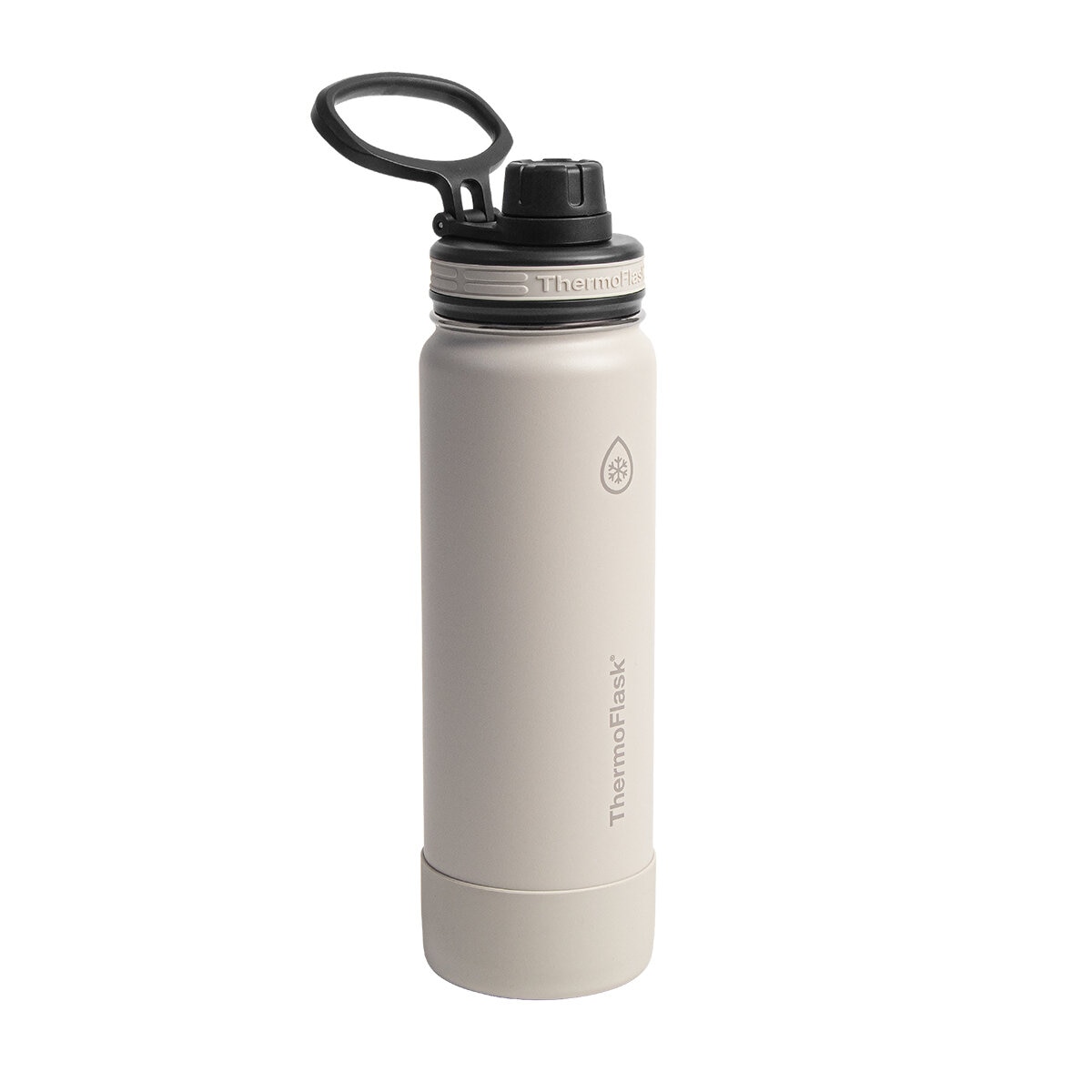 - Incluye (2) botellas de agua de acero inoxidable aisladas ThermoFlask® de 24 oz/0,71 l con tapas con pico y pajita y protector de silicona
