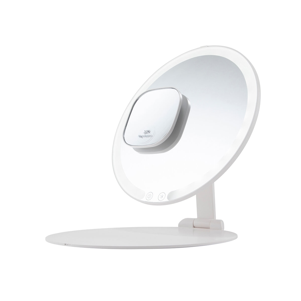 | Cantidad | El juego contiene: 1 Espejo LED plegable de viaje, 1 Espejo magnético con aumento 10x, 1 Cable USB Tipo C, 1 Paño para limpieza, 1 Bolsa Antipolvo, y 1 Manual de usuario. |
