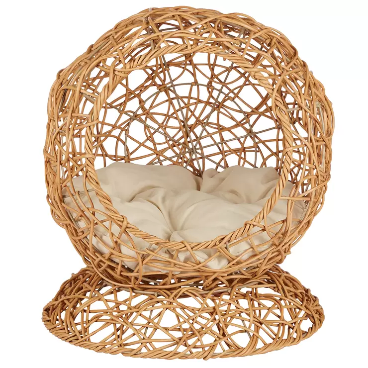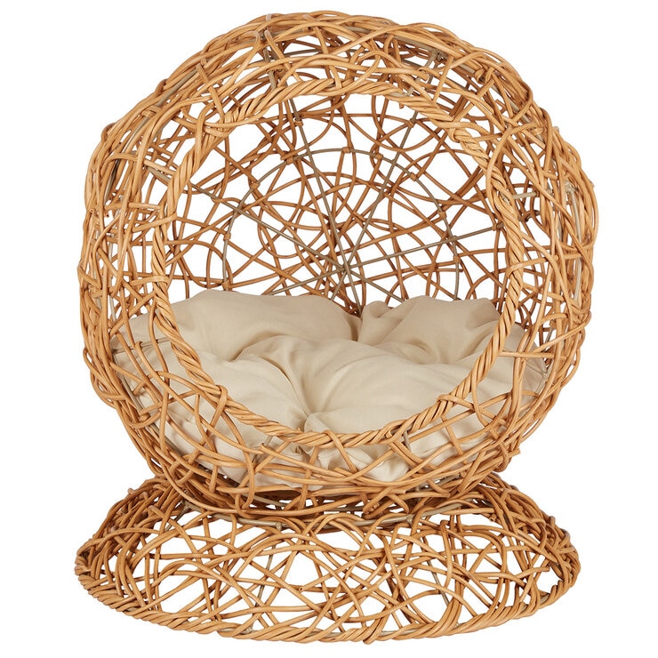 Esta cama elevada para gato es perfecta para tu mascota, ya que ofrece un elegante nido para dormir. Está hecha de ratán sintético tejido a mano. Su color natural combina con cualquier decoración. Su forma redonda facilita la circulación del aire, manteniéndola fresca y cómoda. Ofrece un refugio seguro para relajarse y jugar. Incluye un cómodo cojín que garantiza un lugar de descanso confortable para tu mascota.