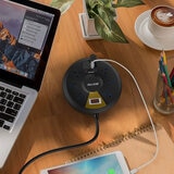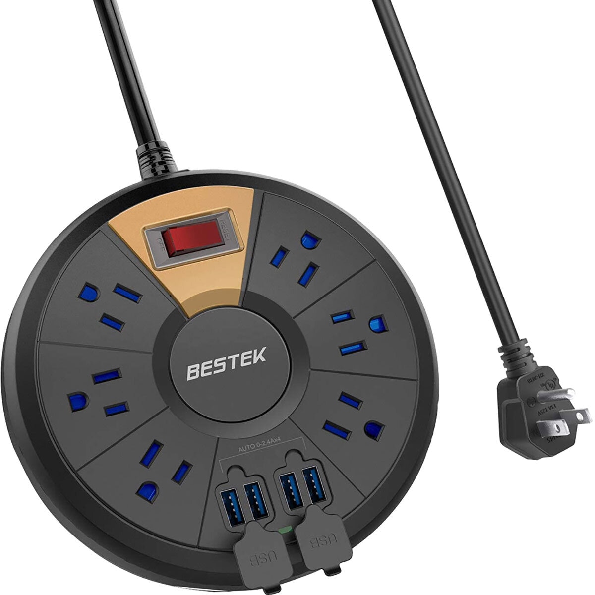 Supresor Multi-Contactos con 6 entradas AC, 4 puertos USB de 5V por puerto, le permite cargar hasta 10 dispositivos simultáneamente y brinda seguridad para estaciones de trabajo domésticas y profesionales. Cuenta con 1625W y una protección de 220J. Su innovador diseño en forma circular proporciona más espacio entre cada tomacorriente. También ofrece un rendimiento eficiente al estar fabricado con materiales resistentes al calentamiento y sobrecargas. Es ideal para el hogar, la oficina y talleres de trabajo. Es seguro y conveniente. Cuenta con un interruptor iluminado para indicar si está encendido o apagado, así como una protección contra variaciones de voltaje, sobrecalentamiento y cortocircuitos.