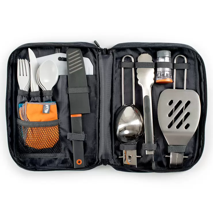 - Limpieza Fácil en el Exterior: El kit viene listo para el mantenimiento post-comida con una toalla de campamento de secado rápido y una fibra de limpieza integrada.