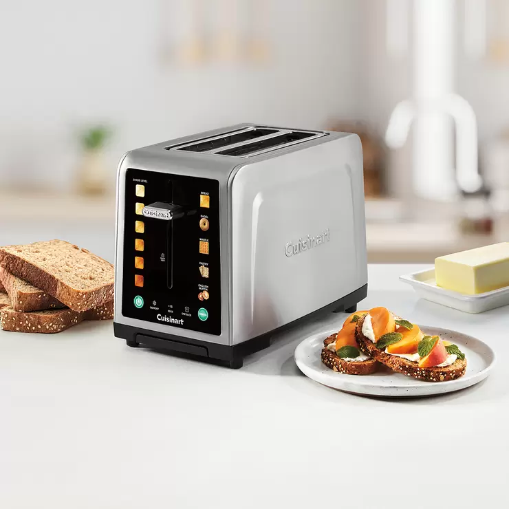 ¡Llevamos el tostado a otro nivel! Cuisinart presenta un tostador innovador con pantalla que se ilumina con tus funciones favoritas, con controles táctiles para un estilo premium y un tostado sin esfuerzo. Sus características lo hacen destacar: unas ranuras extra grandes para tostar mayor variedad de panes, función QuickView™ que permite verificar el tostado sin interrumpir el ciclo, y el control de +30 segundos añade tiempo adicional según sea necesario. El elegante panel táctil negro permanece invisible en modo de espera y se activa al tocar el icono de encendido, iluminando las opciones de Bagel, Descongelar, Wafle y más. ¡El estilo se fusiona con la tecnología en este tostador de pantalla táctil!