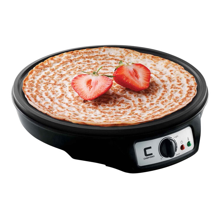 - ¡Con el Chefman Electric Griddle & Crepe Maker puedes hacer crepes, blintzes, panqueques, huevos, tocino y muchos más favoritos de manera rápida y fácil! Esta bandeja de crepé multifuncional también se dobla como una plancha, por lo que puede usarla de día o de noche; El desayuno, el brunch, el almuerzo o la cena serán más fáciles y divertidos que nunca.