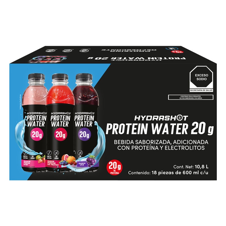 Hydrashot Bebida de Proteína + Electrolitos con 20 g de Proteína 18 / 600 ml
