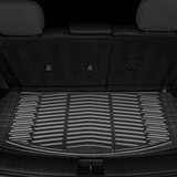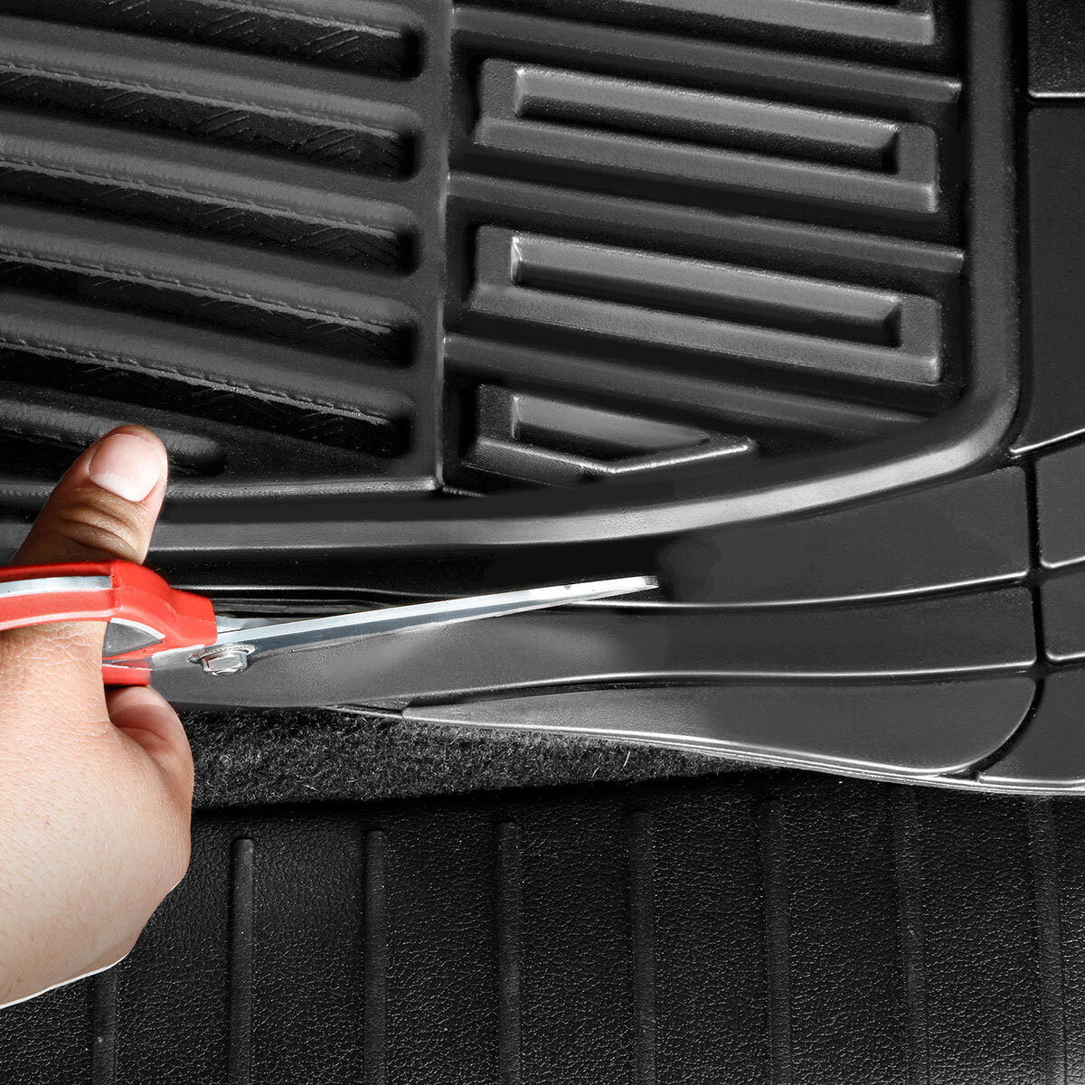 La línea de recorte central permite que el tapete se divida uniformemente y se use para la cajuela/lugar de carga y un corredor en el piso de los asientos de la tercera fila.