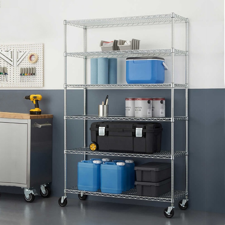 Las estanterías de alambre de uso comercial certificadas por NSF de TRINITY son perfectas para cualquier uso industrial, doméstico, de garaje o de cocina. Con una capacidad de peso de 1,000 lb por estante en niveladores de pies, puede guardar sus cajas, utensilios de cocina, herramientas y todo lo que se encuentre en el medio. El ensamblaje no requiere herramientas y utiliza un sistema de bloqueo de funda deslizante que permite ajustar los estantes en incrementos de 1 pulgada.