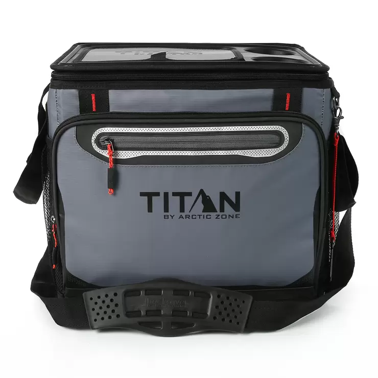 La Hielera Plegable para 40 Latas de Titan retiene el hielo hasta por 2 días, con una capacidad de 40 latas, lleva todo lo necesario para tu día de campo mientras se conserva en la temperatura ideal.