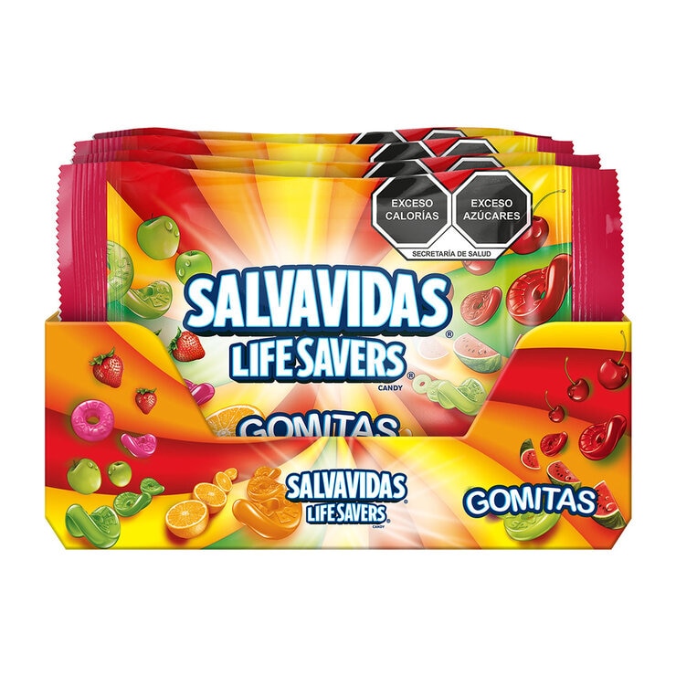 Lifesavers, gomitas de sabores surtidos, perfectas para satisfacer tu antojo. Sabores: cereza, sandía, manzana verde, fresa y naranja.