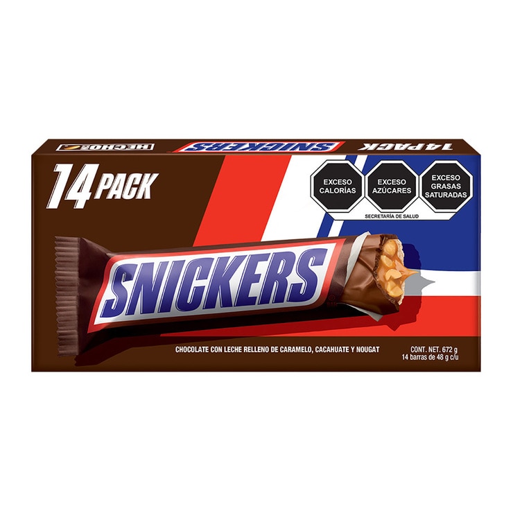 Snickers Chocolate Relleno de Caramelo, Cacahuate y Nougat 14 pzas de 48 g