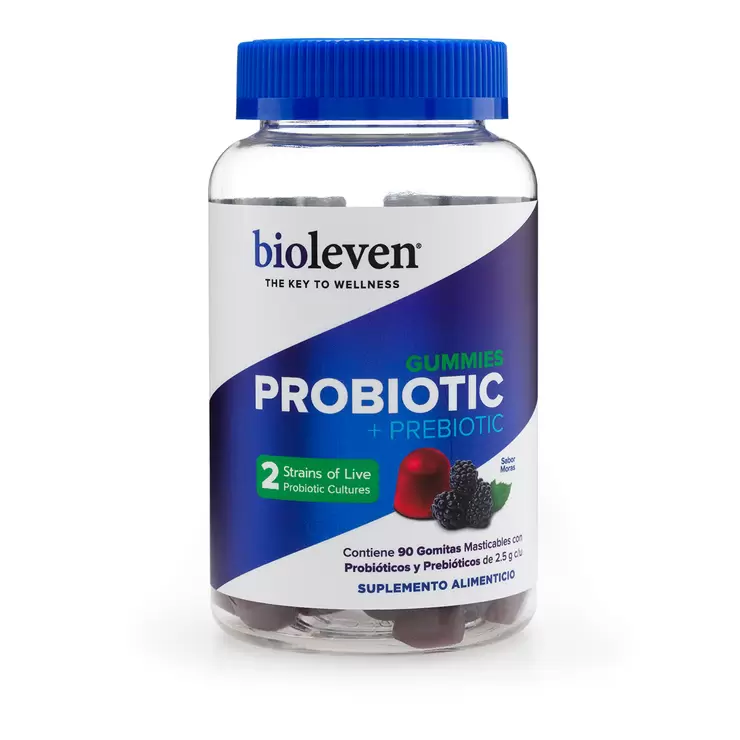 Contiene 90 gomitas masticables con probióticos y prebióticos de 2.5g c/u