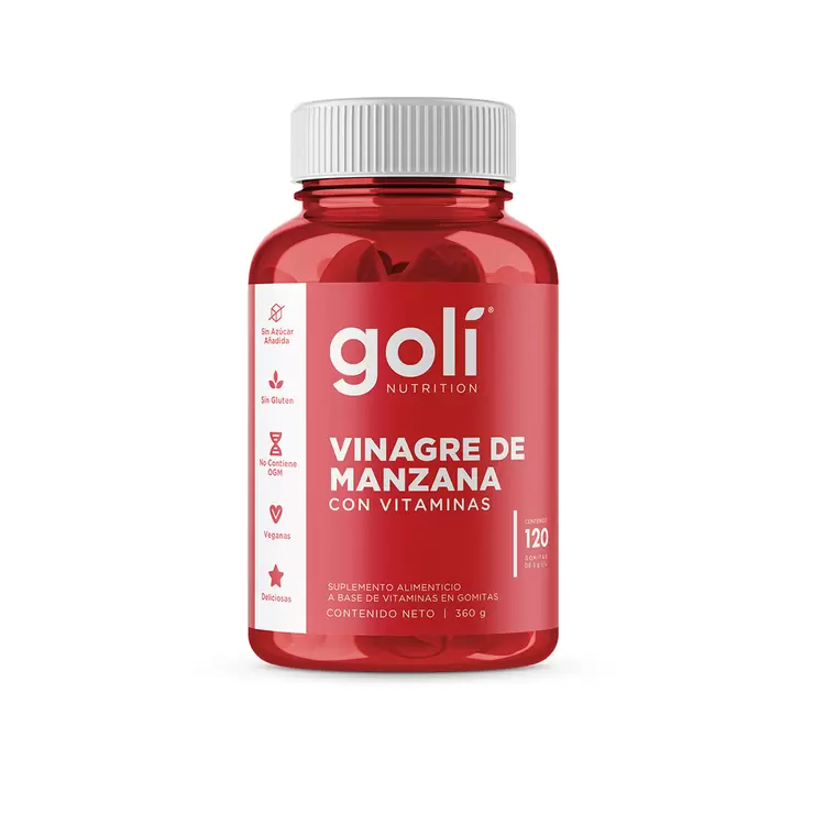 - Cada botella de Goli contiene 120 deliciosas gomitas veganas, orgánicas, no transgénicas, sin gluten y sin gelatina. Nuestra fórmula hará que el vinagre de manzana sea accesible para todos. 2-3 gomitas = 1 shot de vinagre de manzana.