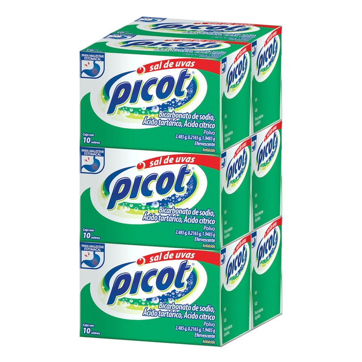 Picot Sal de Uvas Bicarbonato de sodio, Ácido tarárico, Ácido cítrico 6 pzas de 10 Sobres