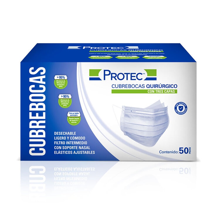 Protec Cubrebocas Plegable Caja con 50 piezasProtec Cubrebocas Plegable Caja con 50 piezas