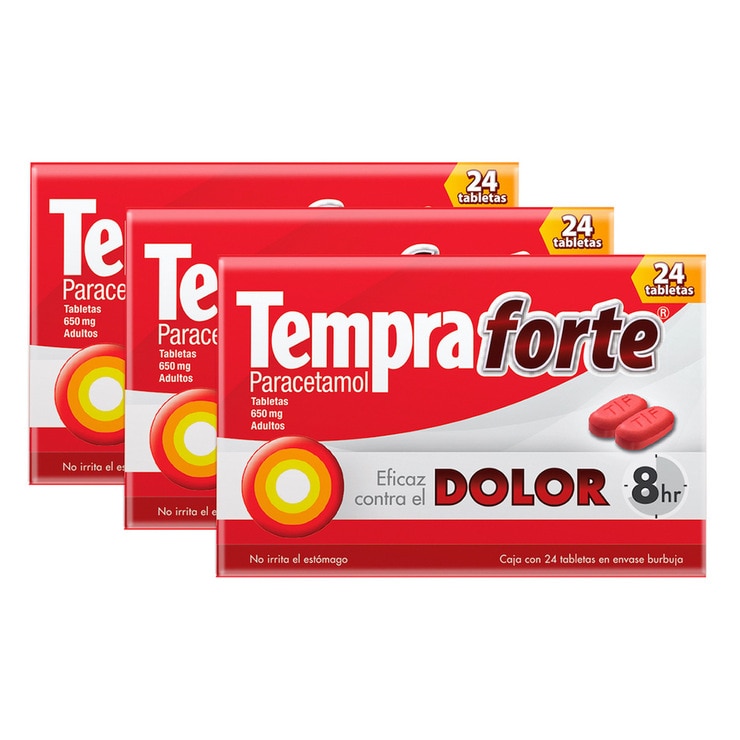 Tempra Forte Paracetamol 650mg 3 Cajas con 24 Tabletas c/u