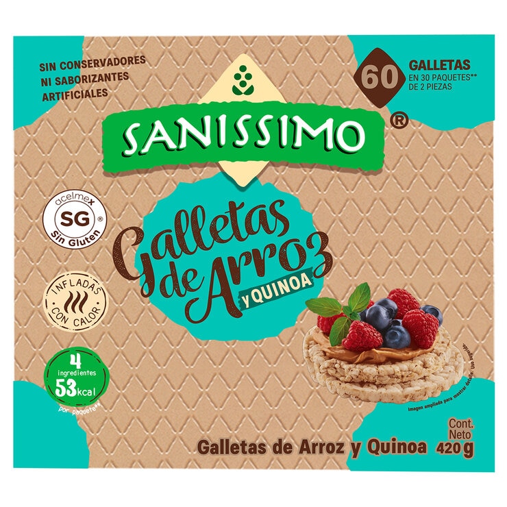 Sanissimo Galletas de Arroz y Quinoa 30 pzas de 14 gSanissimo Galletas de Arroz y Quinoa 30 pzas de 14 g