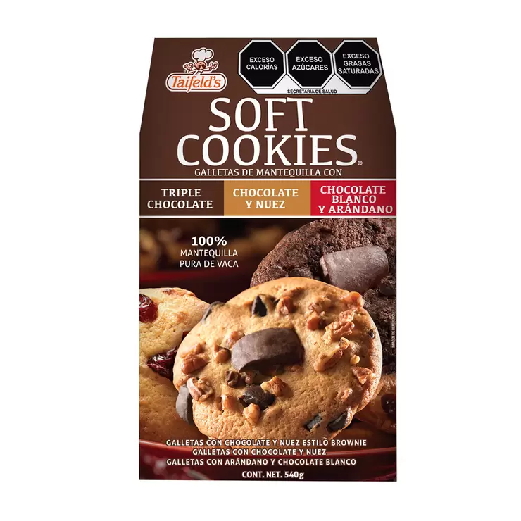 El paquete de galletas suaves de Taifelds contiene 3 variedades de galletas en 3 charolas separadas: