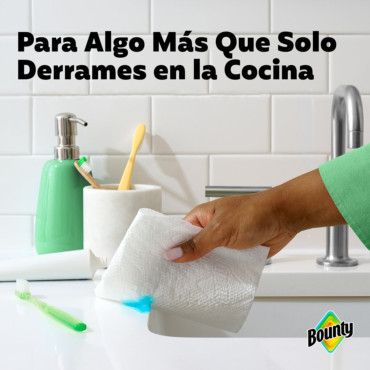 ¿Derramaste tu bebida? ¡Rápido! ¡Prepárate para limpiar desastres y derrames con las toallas de papel Bounty! Cada hoja es el doble de absorbente, por lo que puedes usar menos y limpiar más rápido que con la marca común líder.