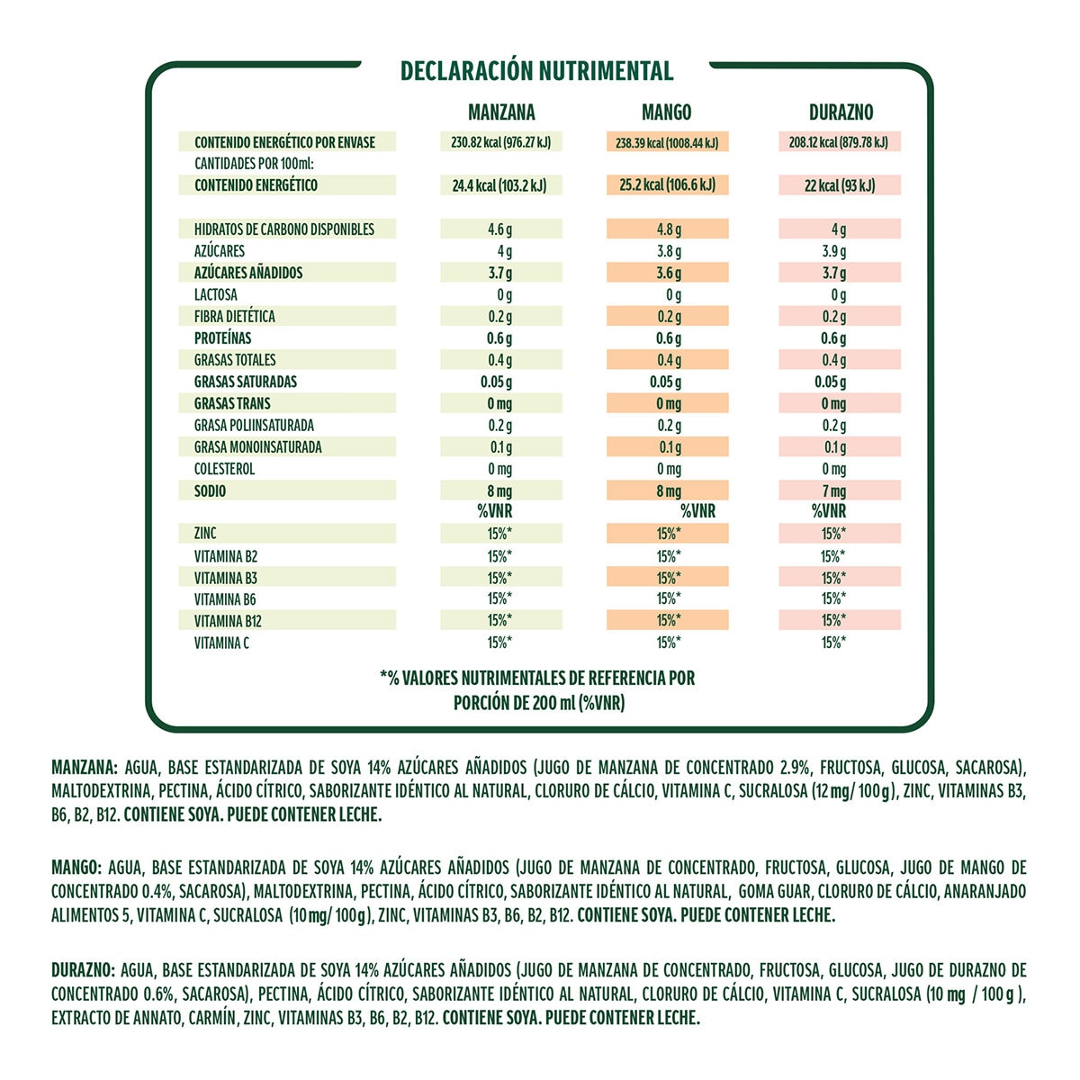 | Tipo | Bebida de Soya con jugo |
