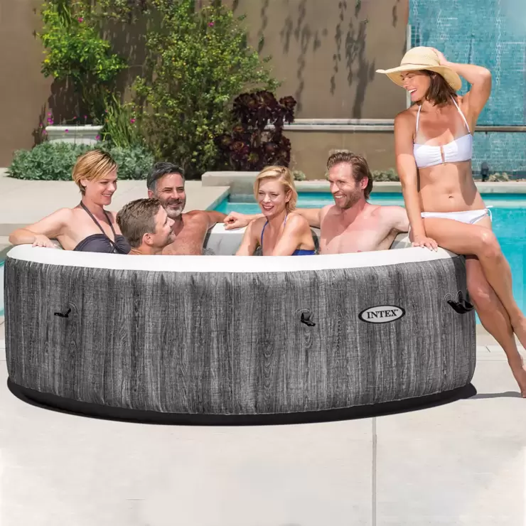 La tecnología de relajación que maneja la línea Greywood Deluxe™ se llama «Bubble Jet» única en su categoría de Spas INTEX®, burbujas calientes o frías, como tú lo prefieras. El tono que lo envuelve tipo madera, lo hace ver elegante y lo distingue sobre los de su categoría.