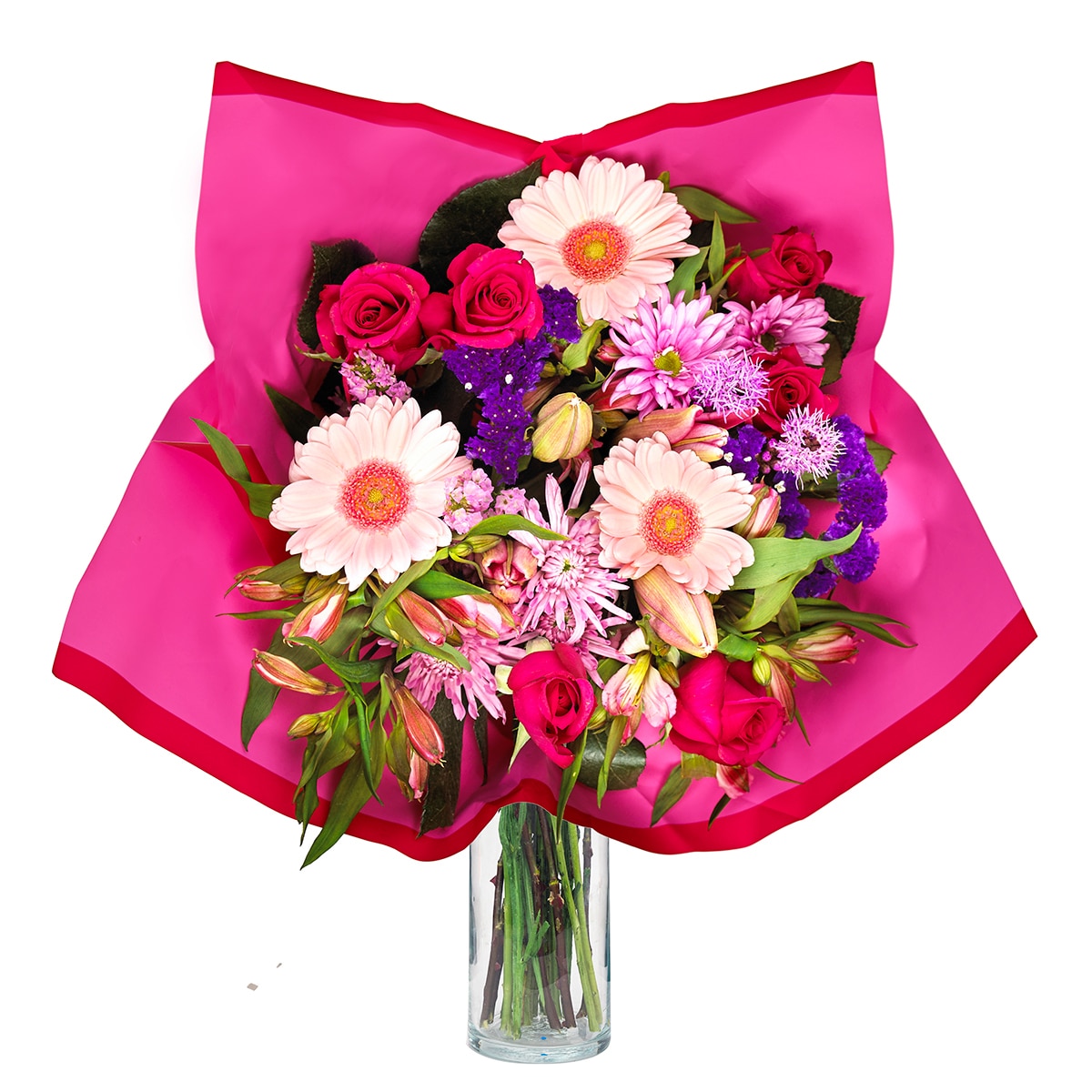 Bouquet mixto con 28 tallos en tonos rosas y morados