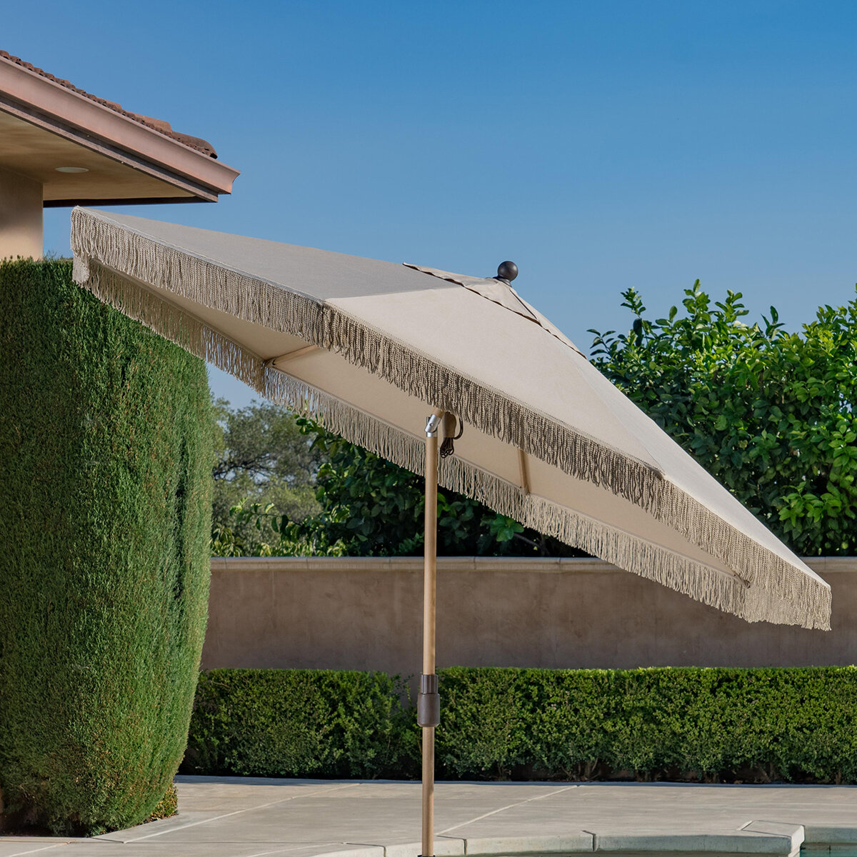 Aporte encanto vintage y funcionalidad moderna a su oasis exterior con la sombrilla de 3 m con fleco Cabana de SunVilla. Su toldo redondo de 3 metros, fabricado en tejido Outdura® de primera calidad, está diseñado para resistir la decoloración, las manchas y el moho, garantizando una belleza duradera y protección contra los cambios climáticos. El detalle de flecos en la orilla del toldo añade un toque de elegancia retro, haciendo de esta sombrilla una pieza destacada que eleva el estilo de cualquier patio, jardín o espacio junto a la piscina.