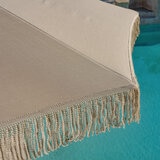- Detalle de flecos: Cuenta con un elegante fleco alrededor de la orilla del toldo, añadiendo encanto de inspiración vintage a cualquier espacio al aire libre, ya sea un patio, jardín o refugio junto a la piscina.