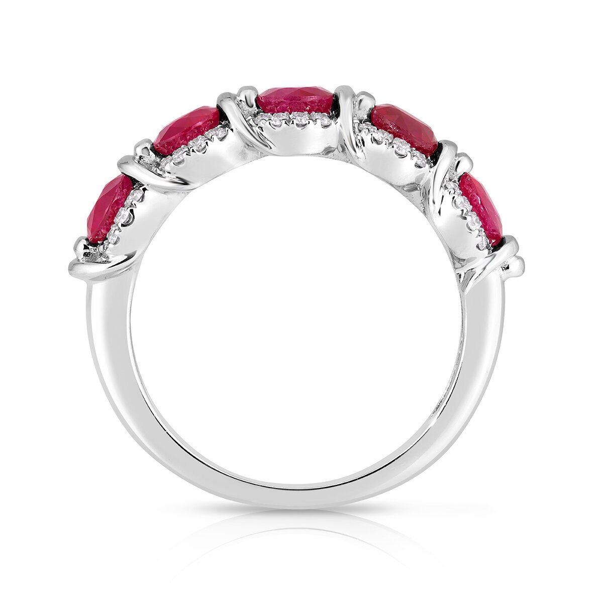 Anillo de Rubí con Diamantes, 0.12ctw, Oro Blanco 14K