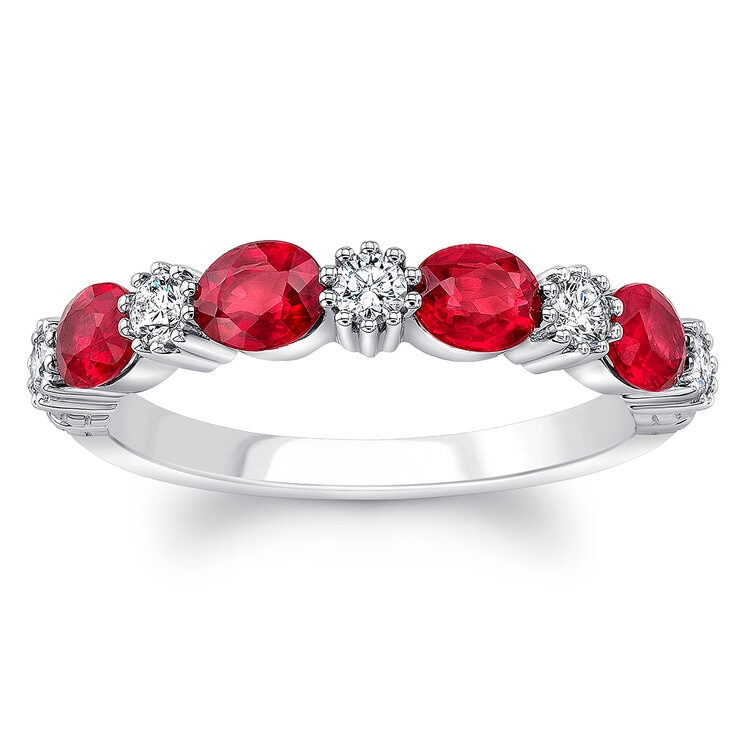 Anillo de Rubí con Diamantes, 0.25ctw, Oro Blanco 14K