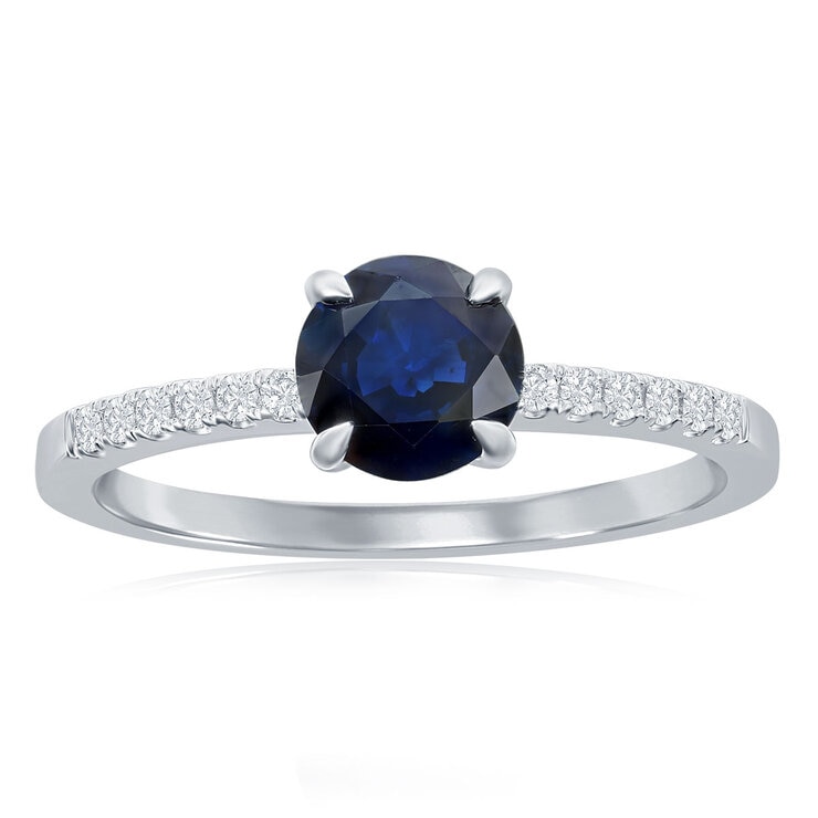 Anillo de Zafiro Azul con Diamantes 0.10ctw, Oro Blanco de 14K