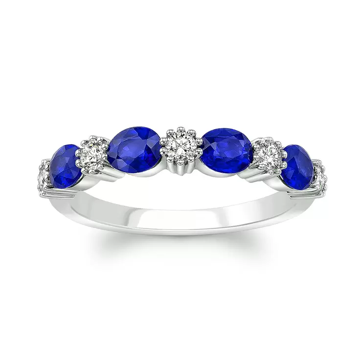 Anillo de Zafiro Azul y Diamantes 0.25ctw, Oro Blanco de 14K