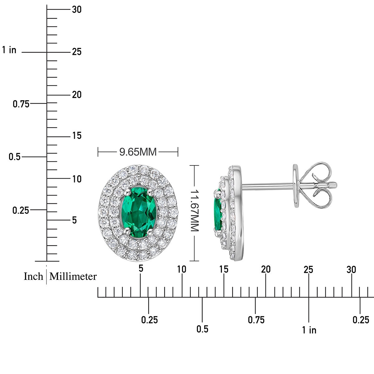 Aretes de Esmeralda Creada con Diamantes, 0.50ctw, Oro Blanco de 14K
