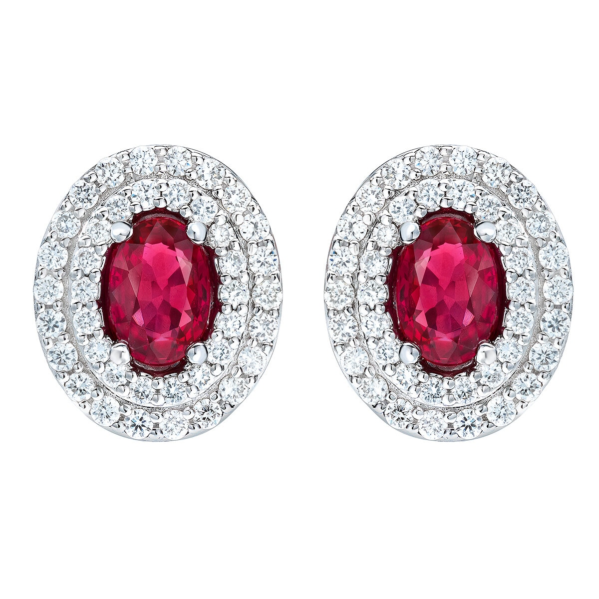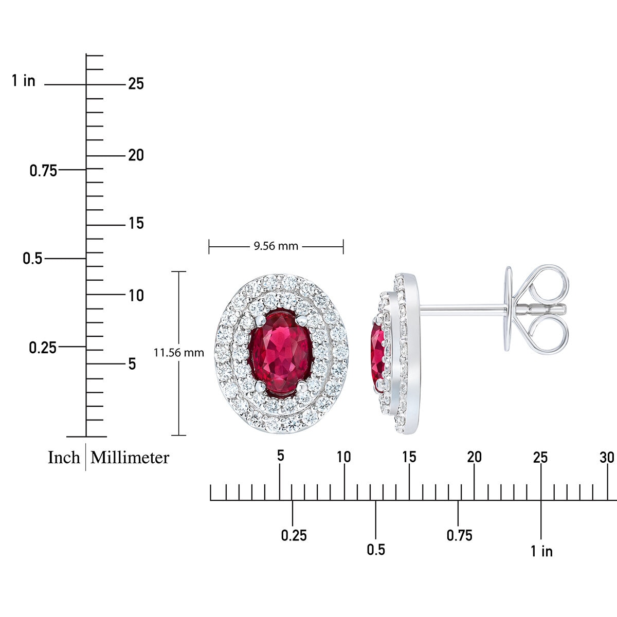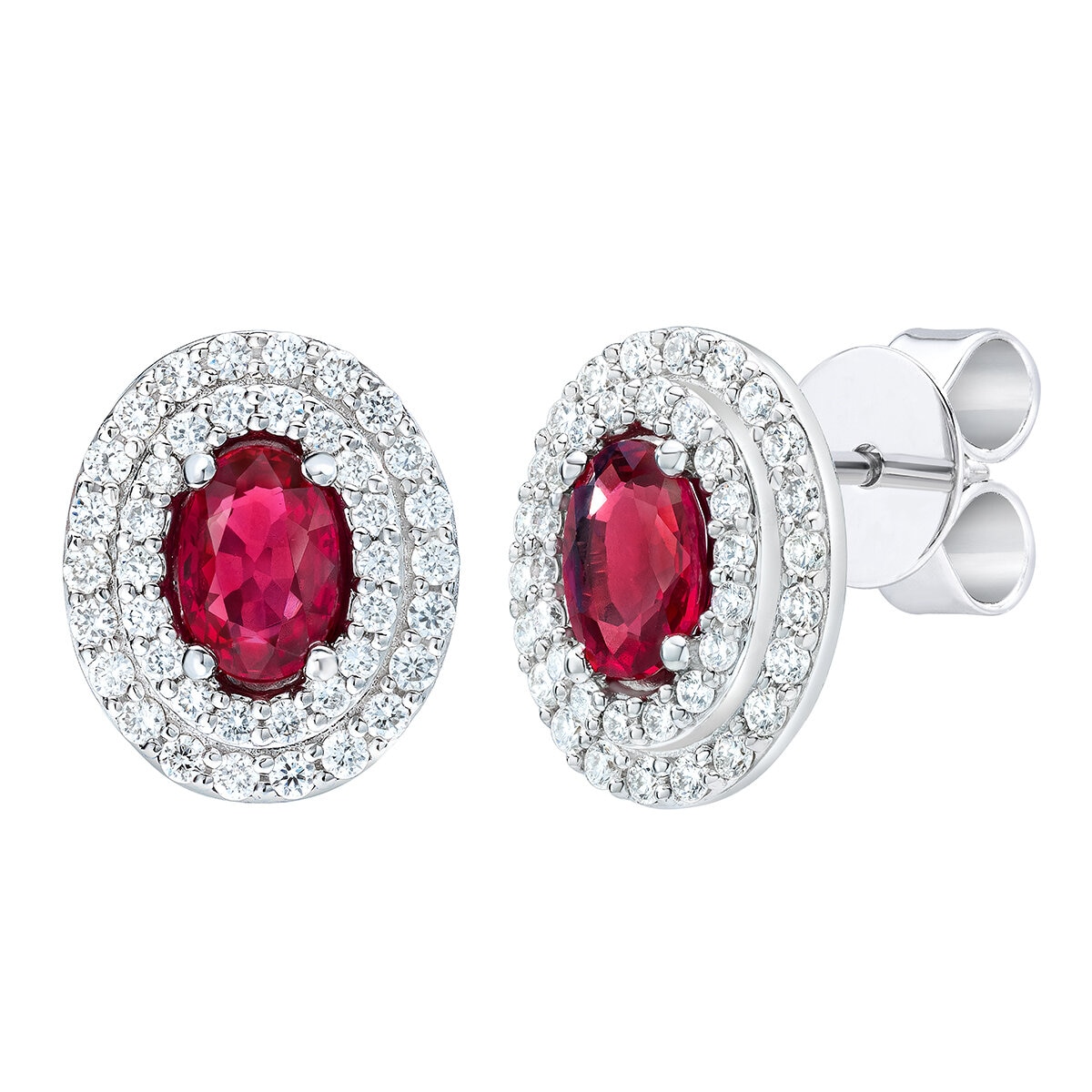 Aretes de Rubí y Diamantes 0.50ctw, Oro Blanco de 14K