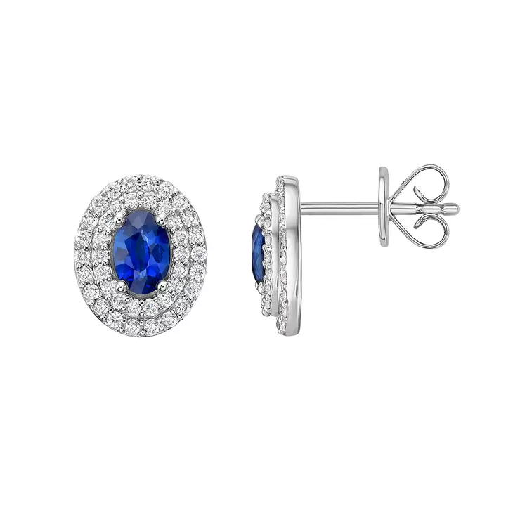 Aretes de Zafiro Azul con Diamantes, 0.50ctw, Oro Blanco de 14K