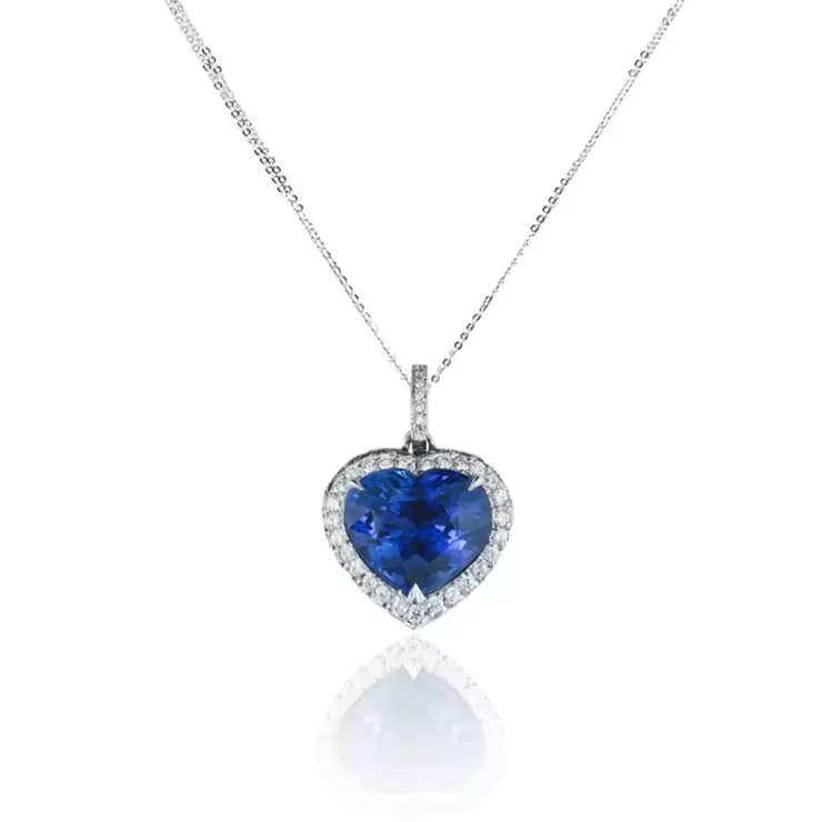 Collar de Zafiro Azul y Diamantes, Forma de Corazón, Oro Blanco de 18kt