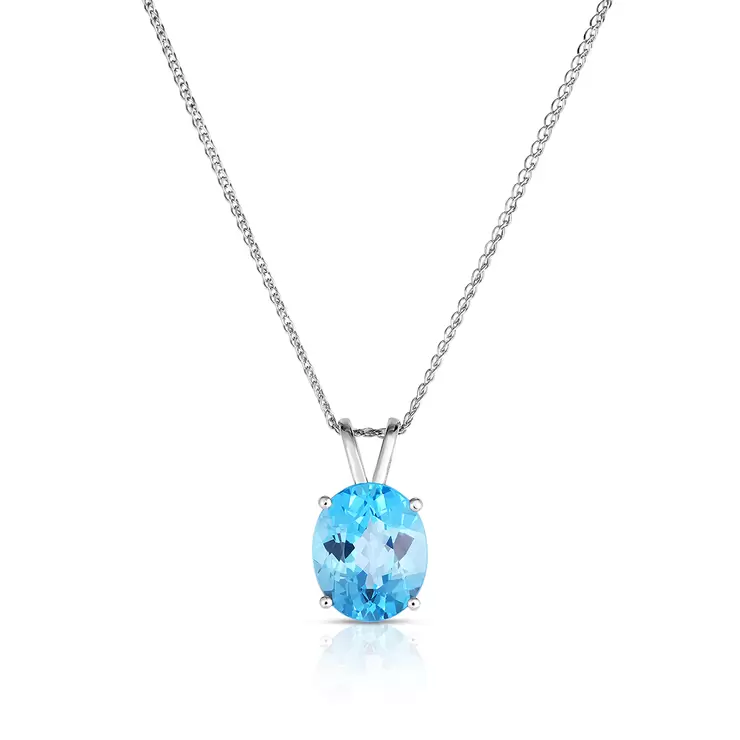 Dije de Topacio Azul, Oro Blanco de 14KDije de Topacio Azul, Oro Blanco de 14K