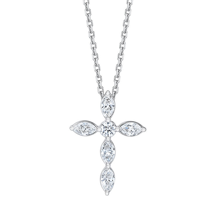 Dije de Cruz de Diamantes, 0.85ctw, Oro Blanco de 14K