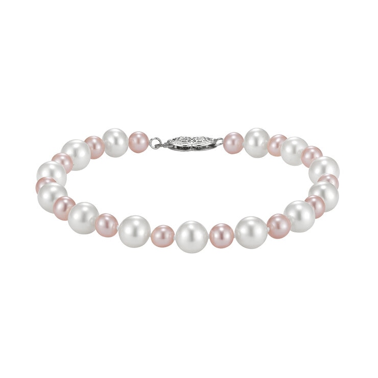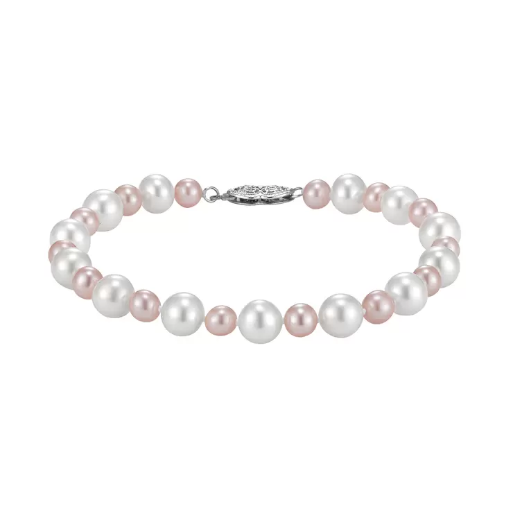 Pulsera de Perlas 5.5-7.5mm, Oro Blanco de 14k