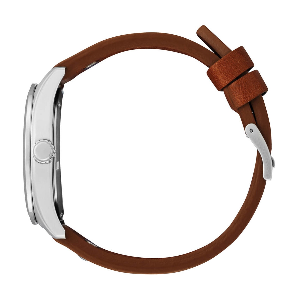 Elévate a nuevas alturas con este reloj de inspiración vintage de Disney por CITIZEN®. El nuevo Mickey Aviator cuenta con detalles clásicos como la correa de piel café claro con costuras marfil y remaches. Su caja de acero inoxidable cuenta con una carátula de tono marfil que luce una exclusiva obra de arte que muestra a Mickey volando un avión antiguo, con la hélice como la subcarátula del segundero. Posee resistencia al agua hasta 100 metros, fechador y manecillas luminosas. Gracias a su tecnología Eco-Drive jamás requerirá cambiar la batería.