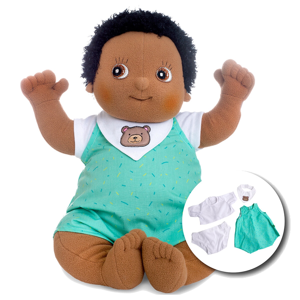 Recomendado para todas las edades. Lavable a máquina. La presentación es en caja. Material 100% Tela. Color de cabello: Negro. Color de Ojos: Cafés. Tipo de ojo: Siempre abiertos. Etnia: Afroamericana.