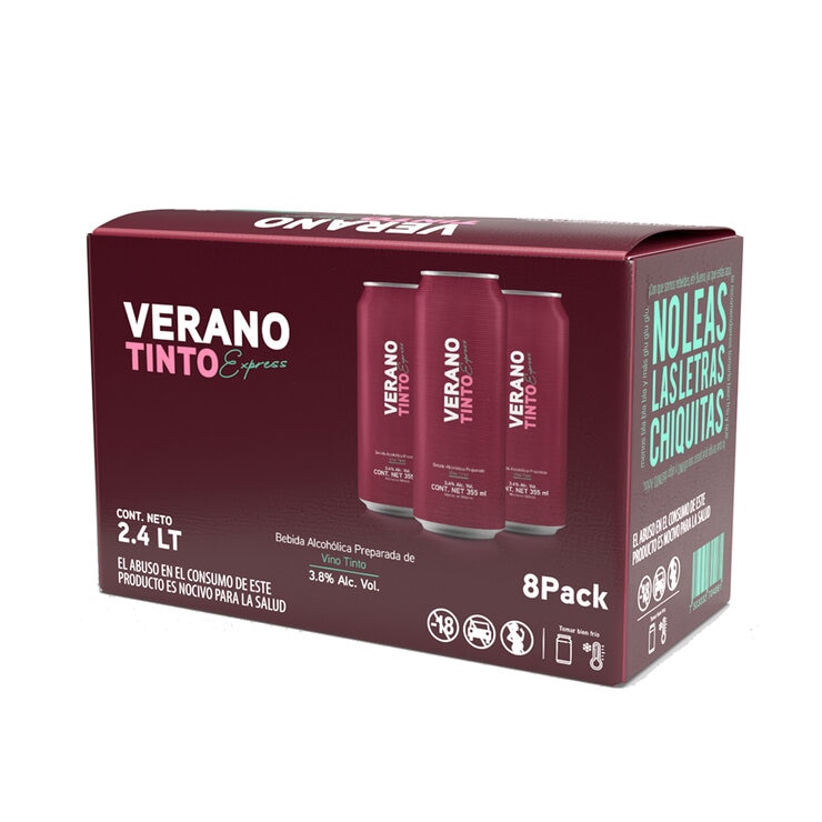 8 pack Verano Tinto Express. La mezcla perfecta entre vino tinto y gaseosa de limón.
