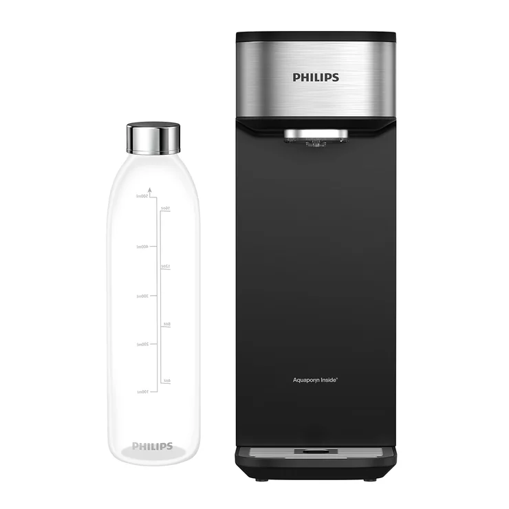 Como valor exclusivo, este modelo incluye una botella de vidrio reutilizable de 500 ml, diseñada para encajar perfectamente en el dispensador, permitiéndole servir y transportar su agua con estilo y sin generar residuos plásticos. Su avanzada tecnología Aquaporin Inside™ de Ósmosis Inversa (5 etapas) elimina hasta el 99.9% de contaminantes (plomo, cloro, pesticidas, bacterias), garantizando agua de sabor superior. Su diseño ultra compacto y el sistema de monitoreo inteligente de filtro hacen de este purificador la solución perfecta para una hidratación saludable y sostenible.