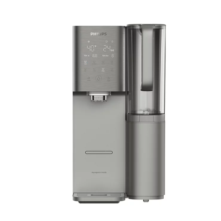 El Dispensador de Agua Philips (ADD6928DG/37) ofrece una solución integral de hidratación premium para su hogar u oficina, combinando purificación avanzada y control total de temperatura sin necesidad de instalaciones de plomería complejas. Este sistema de mesa utiliza tecnología de Ósmosis Inversa (RO) todo en uno de 5 etapas, capaz de eliminar hasta el 99.9% de contaminantes, virus y bacterias, mientras remineraliza el agua para equilibrar su pH y mejorar el sabor. Gracias a su potente sistema de enfriamiento por compresor, usted disfrutará de agua verdaderamente helada hasta 5°C, así como de agua hirviendo al instante mediante su tecnología de calentamiento rápido de 1400W. Su diseño elegante en color gris oscuro integra un tanque de 6 litros y un panel LED intuitivo que permite seleccionar volúmenes precisos y 6 ajustes de temperatura, desde ambiente hasta 95°C, ideal para té, café o fórmulas infantiles. Además, garantiza la higiene continua mediante desinfección UV estática en el tanque de agua fría.