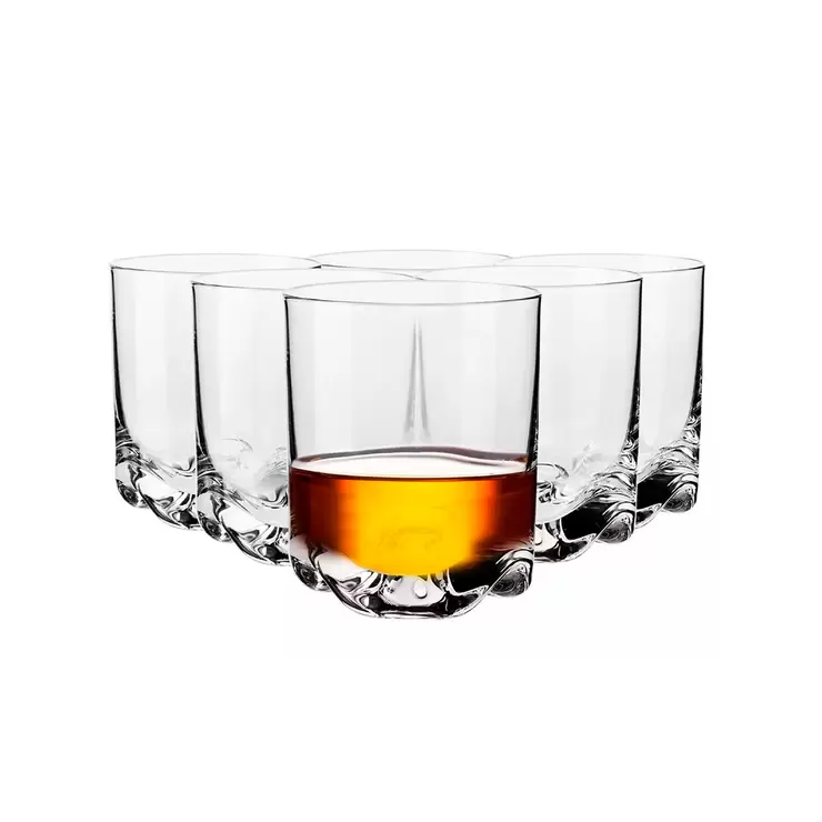 Estos vasos son una gran opción para las personas que además del sabor de las bebidas, notan y aprecian su estética gracias a su fondo de tres secciones especialmente perfilado del recipiente, hace que la luz que se refleja en las paredes de vidrio realce de manera interesante el color de tus bebidas. Cuenta con un borde fuerte y un fondo estable hacen que el recipiente quede seguro en la mano. Son duraderos además de prácticos y están hechos de vidrio con alta transparencia. No contienen plomo.