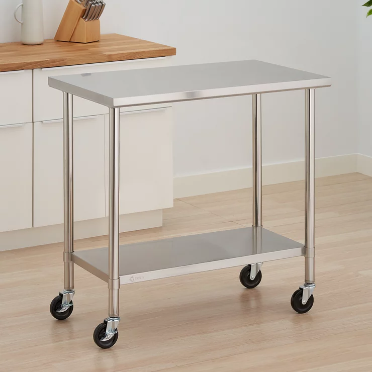 Trinity Mesa de Preparación de Acero Inoxidable con Ruedas