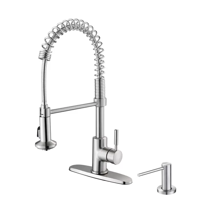 Moorfield, Monomando de Cocina Bistro es una pieza audaz diseñada por chefs profesionales, la grifería de cocina Moorefield ofrece una apariencia moderna y llamativa que complementa a la perfección una amplia gama de estilos de fregaderos y encimeras. Este diseño altamente funcional presenta un cabezal rociador profesional desplegable con un interruptor de gran tamaño fácil de usar para alternar entre los dos estilos de rociado. La construcción sólida de latón y acero combinada con un acabado de primera calidad garantiza años de uso intensivo con una acumulación mínima, brindando forma y función. Una placa de plataforma a juego y una bomba de jabón empotrada completan los accesorios incluidos junto con los accesorios de montaje y las líneas de agua preinstaladas. Todos los grifos Moorefield están respaldados por nuestra garantía e incluyen placas de cubierta, accesorios de montaje y guías de instalación ilustradas a juego.