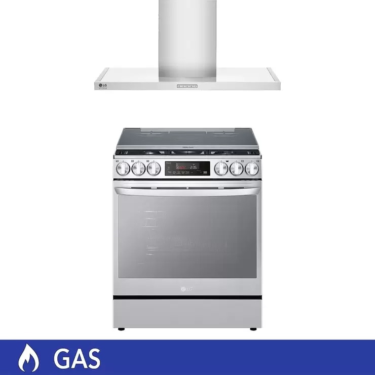 LG Combo Estufa de Gas 5 quemadores 76 cm y Campana de Pared 90 cm