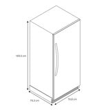- Congelador: 76.8cm frente x 79.3cm profundo x 169.5cm alto, 84.4kg