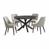 El juego de comedor Huxton de 5 piezas aporta elegancia dimensional moderna a cualquier habitación. Esta colección está elaborada a partir de madera maciza con chapas de roble. Este juego se completa con una mesa de comedor redonda y 4 sillas de comedor tapizadas. Nuestras sillas están diseñadas con asientos acolchados de felpa y respaldo redondeado para mayor comodidad, además de una tapicería de tela resistente a las manchas. Las hermosas chapas de roble y la tapicería de tela neutra realmente ayudan a crear una apariencia moderna y relajante.
