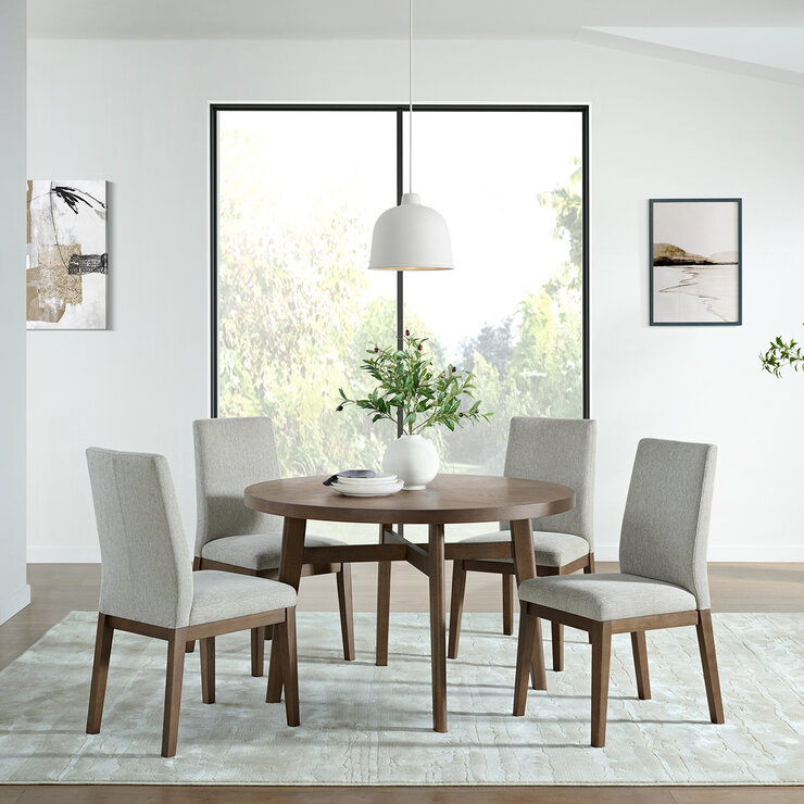 Transforme su comedor con el juego de comedor Pike & Main Brooklyn de 5 piezas, donde la robusta artesanía se fusiona a la perfección con un encanto atemporal. Diseñado específicamente para reuniones, este juego presenta una construcción con madera de caucho de alta calidad y distintivas chapas de fresno que aportan un toque de elegancia rústica a cualquier espacio. Disfrute de la comodidad de sus asientos tapizados en tela. Con su diseño de inspiración rústica, que crea un ambiente cálido y acogedor, el juego de comedor Brooklyn es ideal para momentos inolvidables, convirtiéndose naturalmente en el centro de atención de su hogar.