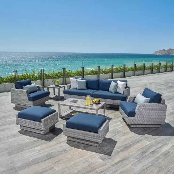 Presentamos el set de 7 piezas Portofino Comfort™ que ofrece una calidad y comodidad inigualables para disfrutar de la vida al aire libre. Disfruta de la sala perfecta con este juego completo que incluye 1 sofá , juego de 2 sillones, 2 otomanos, 1 mesa de centro y 1 mesa auxiliar.